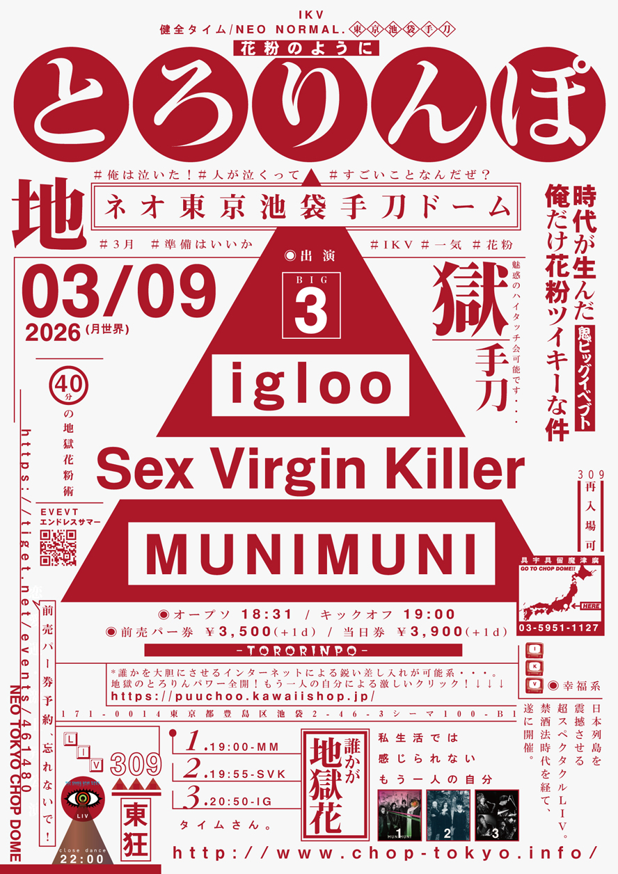 ▼2026/3/30(MOON)_*ネオ東京池袋手刀ドーム http://chop-tokyo.info (美NEO)