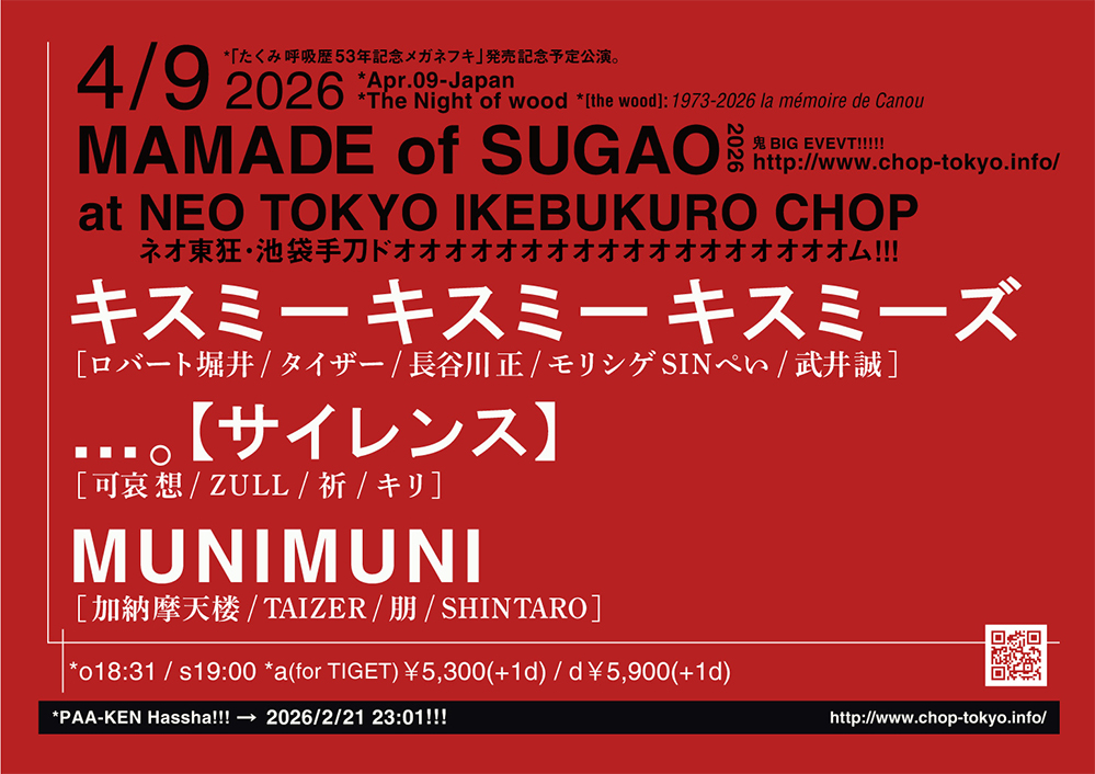 ▼2026/4/9(wood)_*ネオ東京池袋手刀ドーム http://chop-tokyo.info (美NEO)